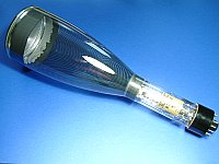 Zu Schul- und Lehrzwecken werden solche einfach aufgebauten Röhren auch heute noch hergestellt. Ein paar wenige solcher Röhren befinden auch in meiner Sammlung. Modernere Röhren haben dagegen oftmals wesentlich mehr Elektroden eingebaut, zur zusätzlichen Beschleunigung oder Fokussierung des Elektronenstrahles, bis hin zu kompletten Bildspeicher- und Lesesystemen. Den Aufbau einer modernen Oszilloskopröhre kann man im folgenden Bild sehen.